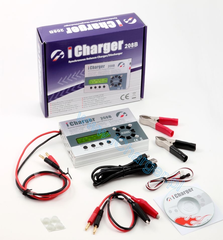 iCharger 208B to zaawansowana ładowarka procesorowa o dużych możliwościach. Obsługuje wszystkie stosowane w modelarstwie typy akumulatorów: Ni-Cd, Ni-Mh, Li-Po, Li-Io, Li-Fe, Pb. Posiada wbudowany balanser 2-8s dla Li-xx. Możliwość ładowania oraz rozładowywania. Przejrzysty wyświetlacz alfanumeryczny. Stosunkowo niewielkie wymiary sprawiają że ładowarka ta jest poręczna i wygodna w użyciu.