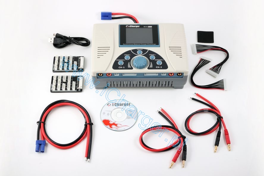 iCharger 4010 DUO to zaawansowana ladowarka procesorowa o duzych mozliwosciach. Obsluguje wszystkie stosowane w modelarstwie typy akumulatorów : Ni-Cd, Ni-Mh, Ni-Zn, Li-Po, Li-Io, Li-Fe, Pb. Posiada wbudowany balancer 2-10s dla Li-xx. Mozliwosc ladowania oraz rozladowywania. Przejrzysty wyswietlacz alfanumeryczny. Stosunkowo niewielkie wymiary sprawiaja ze ladowarka ta jest poreczna i wygodna w użyciu. Ładowarka posiada dwa niezalezne kanaly, umowliwiajace ladowanie dwoch apkietow jednoczesnie.