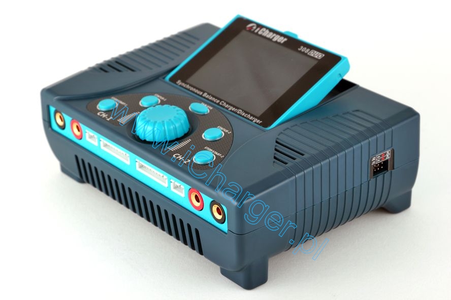 iCharger 308 DUO to zaawansowana ladowarka procesorowa o duzych mozliwosciach. Obsluguje wszystkie stosowane w modelarstwie typy akumulatorów : Ni-Cd, Ni-Mh, Ni-Zn, Li-Po, Li-Io, Li-Fe, Pb. Posiada wbudowany balancer 2-8s dla Li-xx. Mozliwosc ladowania oraz rozladowywania. Przejrzysty wyswietlacz alfanumeryczny. Stosunkowo niewielkie wymiary sprawiaja ze ladowarka ta jest poreczna i wygodna w użyciu. Ładowarka posiada dwa niezalezne kanaly, umowliwiajace ladowanie dwoch apkietow jednoczesnie.